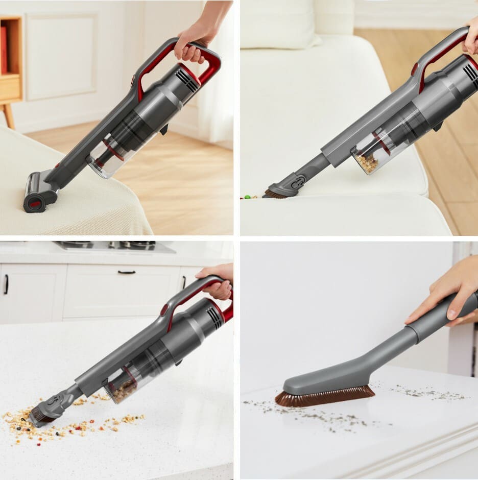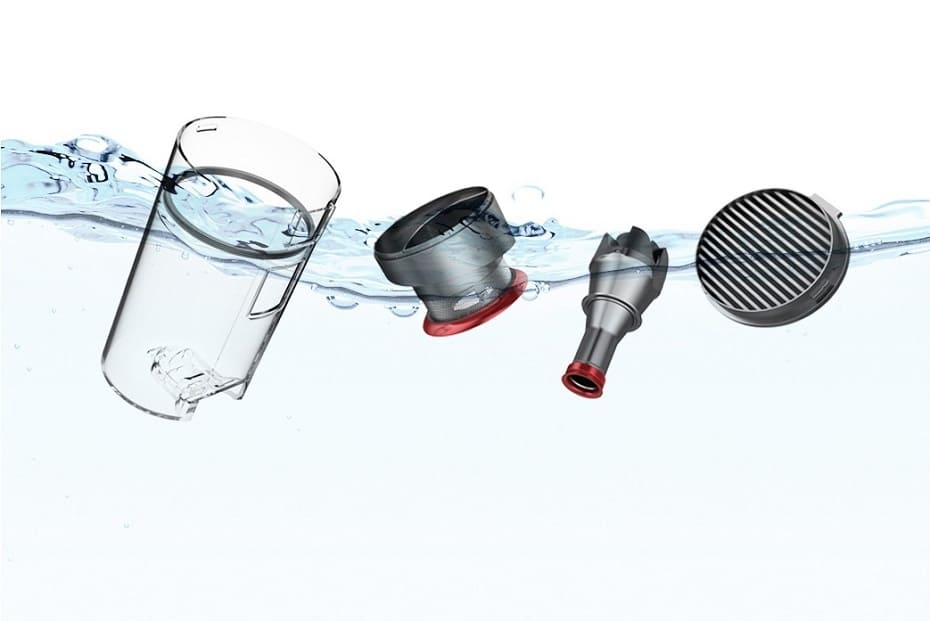 Беспроводной пылесос оснащен мощным двигателем 500 Вт, скорость работы которого достигает 100000 об/мин. Циклонная система фильтрации осуществляет отделение загрязнений от воздуха с эффективностью 99,97 %. Настенное крепление выступает в качестве зарядной станции, поэтому прибор удобно хранить. Время автономной работы составляет 70 минут.